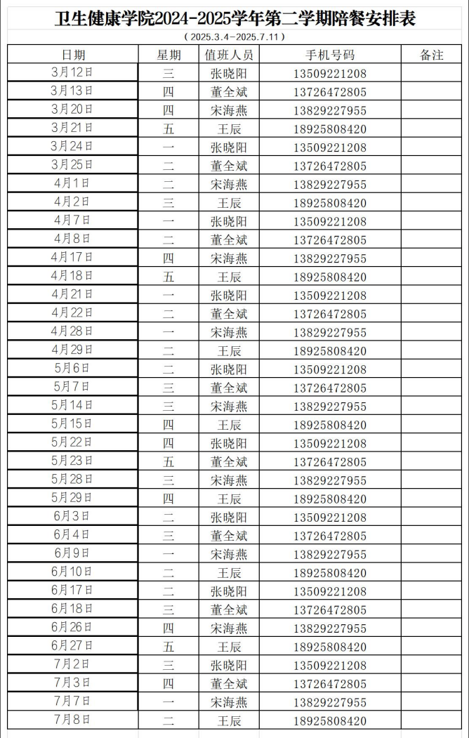太阳成集团tyc122cc2024-2025学年第二学期陪餐安排表
