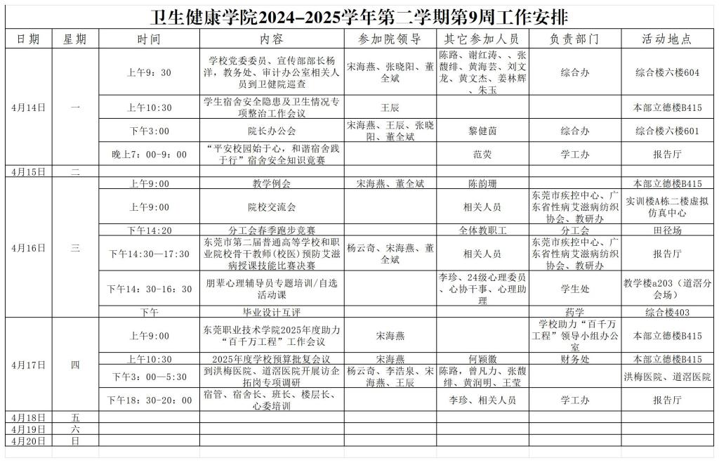 太阳成集团tyc122cc2024-2025学年第二学期第9周工作安排