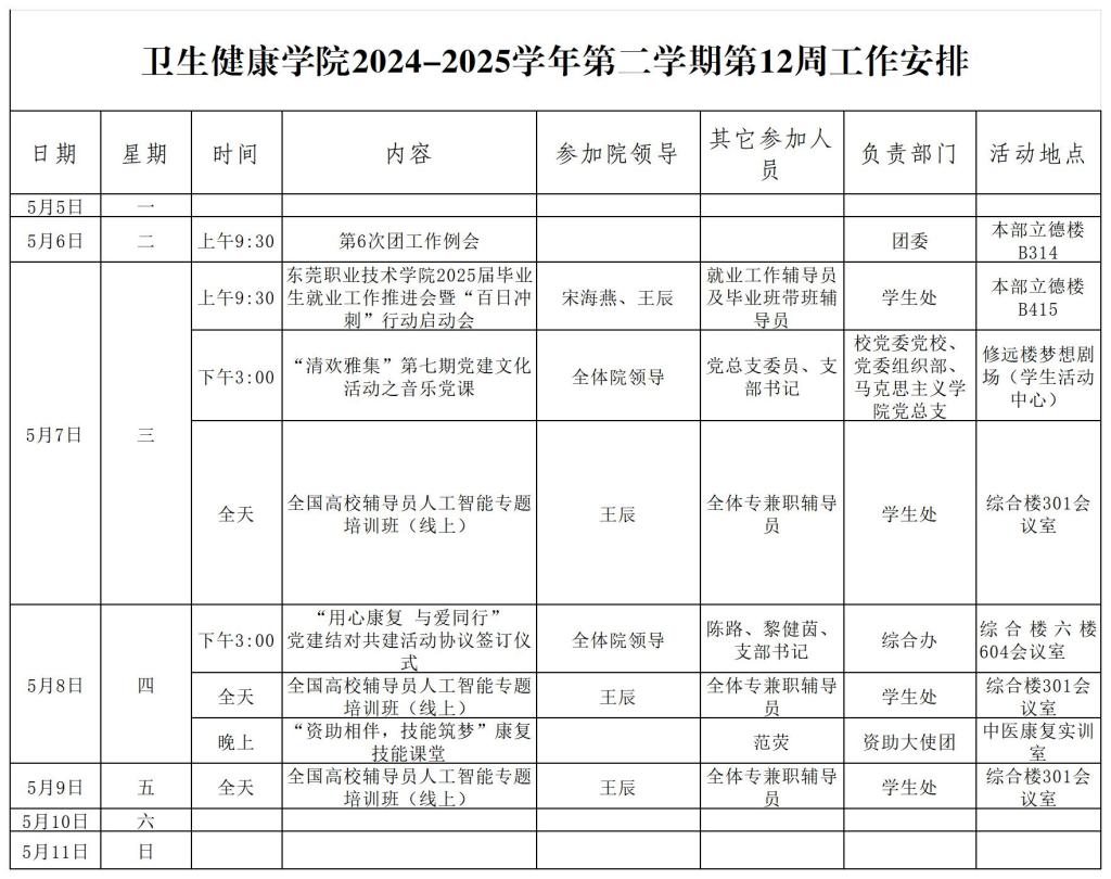 太阳成集团tyc122cc2024-2025学年第二学期第12周工作安排
