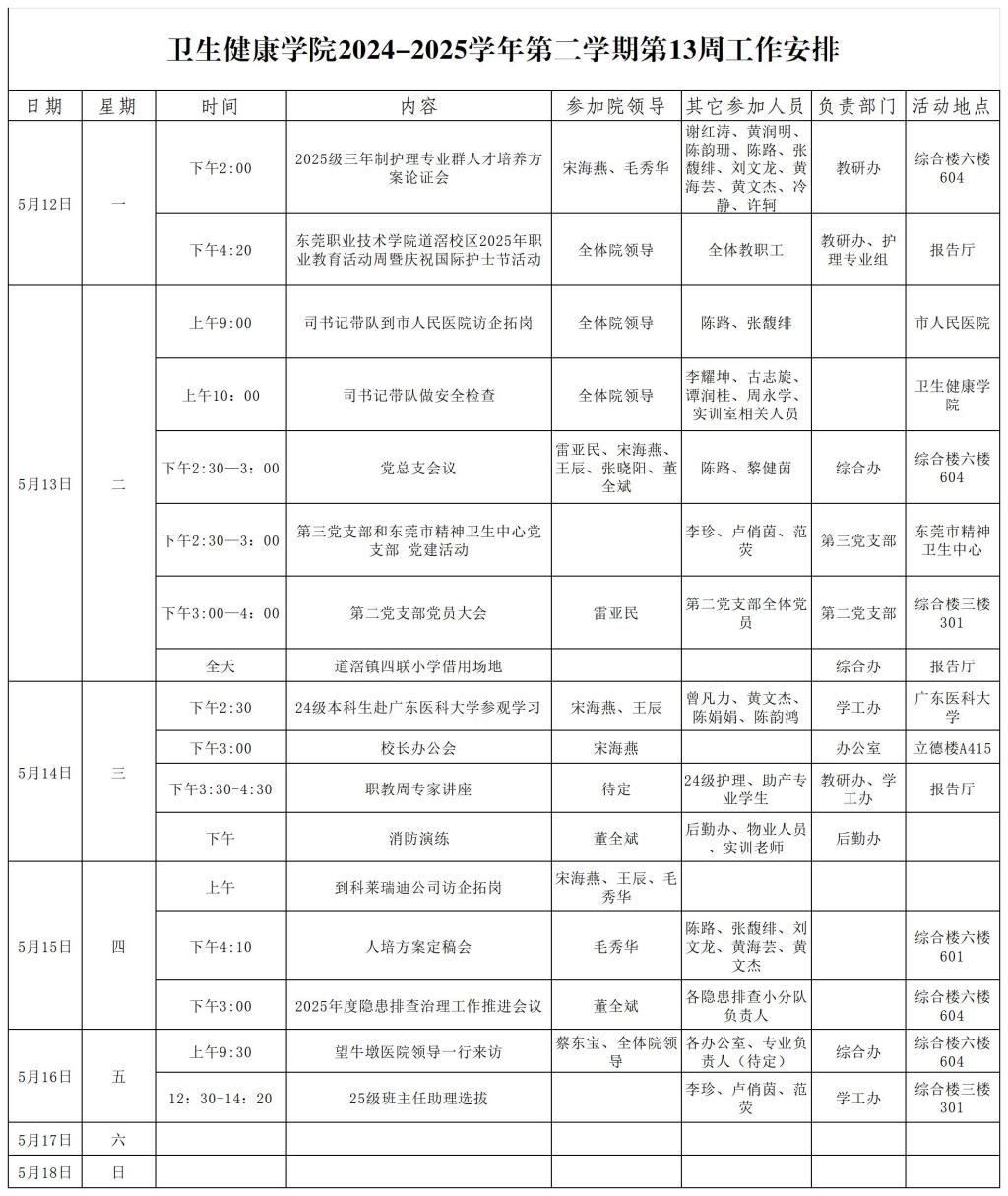 太阳成集团tyc122cc2024-2025学年第二学期第13周工作安排