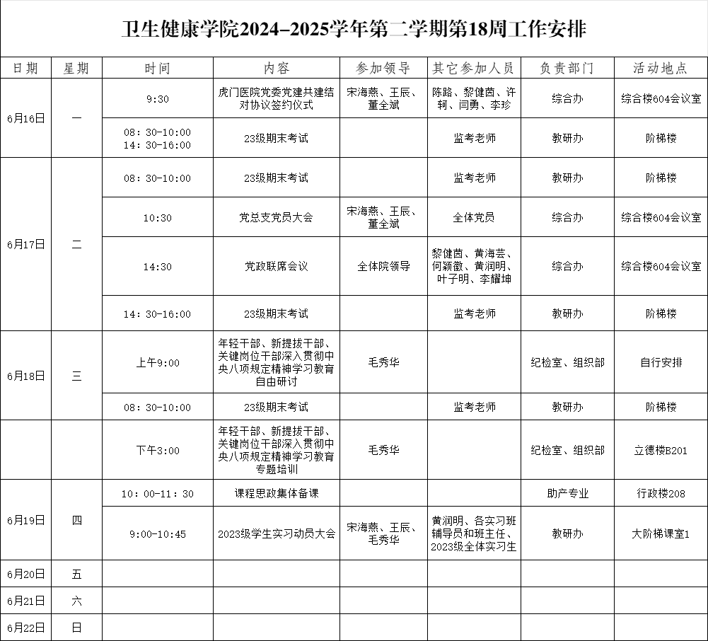 太阳成集团tyc122cc2024-2025学年第二学期第18周工作安排