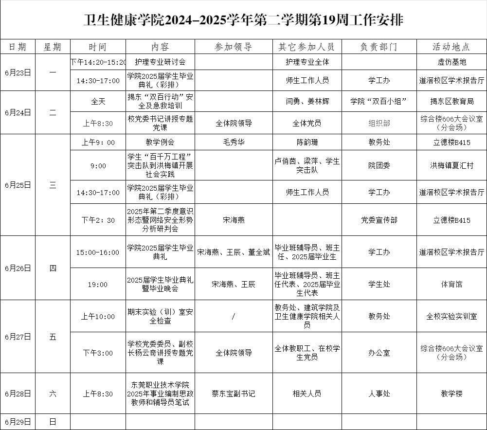 太阳成集团tyc122cc2024-2025学年第二学期第19周工作安排