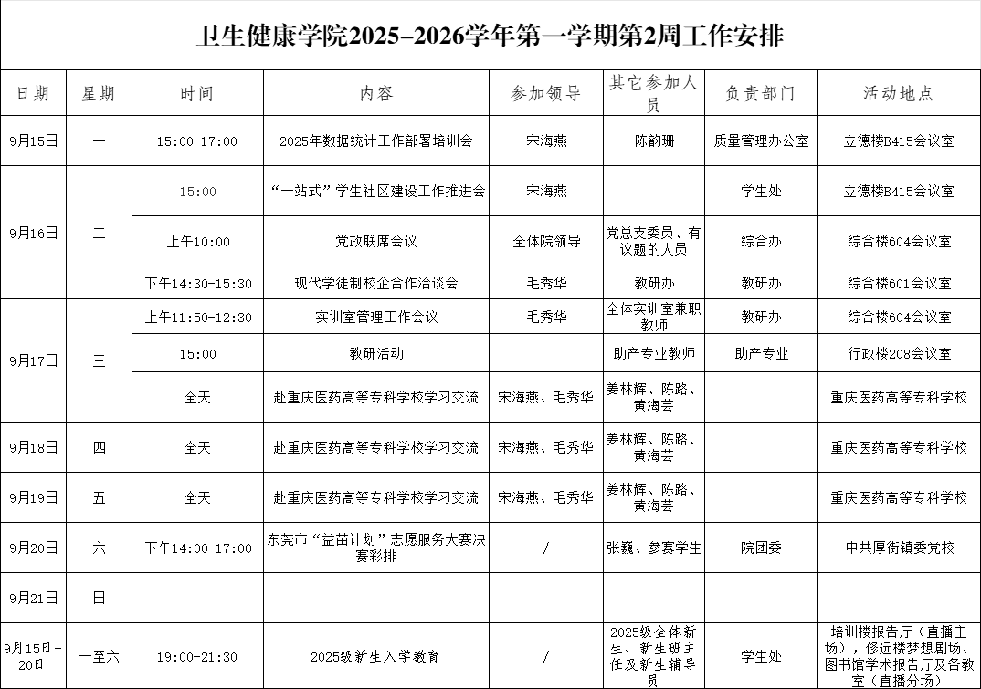 太阳成集团tyc122cc2025-2026学前第一学期第2周工作安排