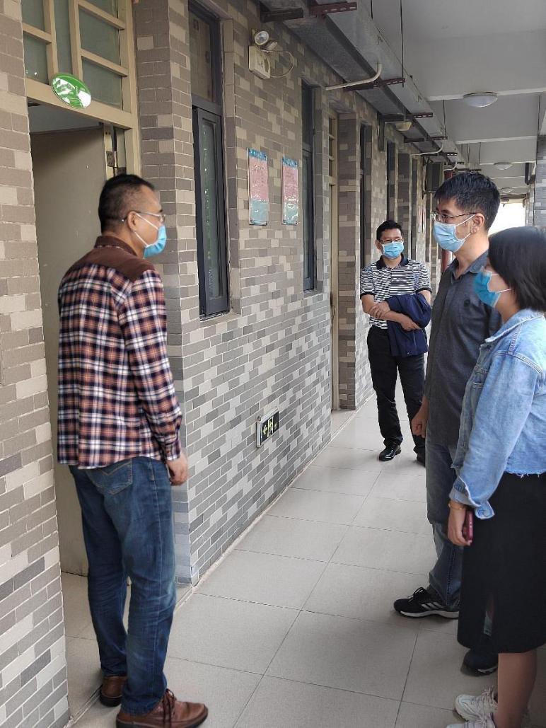 刘海光副董事长、王志明处长认真细致地检查了太阳成集团tyc122cc疫情防控措施落实情况,深入员工宿舍、图书馆与留校同学沟通交流,了解、指导同学们在封校期间的学习、生活。