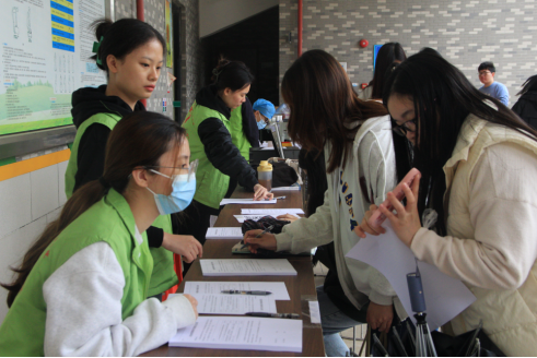 当天早上,市中心血站医护人员和志愿者刚刚到位,一大批同学便已到达现场跟随志愿者和医护人员的指引,完成献血前的登记和检测手续。
