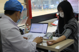 为了确保在献血过程中不出现意外,医护人员首先要对同学们的身体情况进行血型和血压检查。