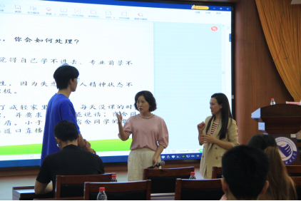 何雪梅副书记以丰富的照片、书信材料为载体讲述了多个具代表性的员工工作案例,并现场邀请老师和员工进行情景模拟,指导大家如何更有效地开展员工辅导与谈话。结合生动典型的案例分析和情景模拟练习,何雪梅副书记总结分享了个人对于员工工作的深切感悟,鼓励在座的班主任及辅导员成为员工的陪伴者、发现者、引领者。