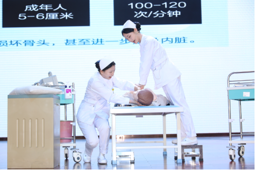 (2022级助产1班张淑慧、2022级护理3班唐文丽同学向展示高职护理专业技能竞赛第一赛道考核过程)