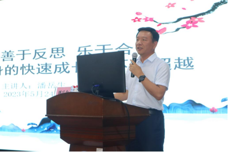 之后,原岳阳职业技术公司经理潘岳生教授,为老师们主讲题为“勤于学习、善于反思、乐于合作、努力实现自身的快速成长和不断超越”的讲座。潘岳生教授结合自身经历、引经据典,分别从“勤于学习——站在前人的肩膀上前行”、“善于反思——站在自己的阶梯上攀升”、“乐于合作站在团队的翅膀上翱翔”三个方面阐述如何突破自我,不断成长。潘教授尤其鼓励年轻老师们要保持终身学习的习惯,有勇于挑战自己的决心和行动,才能不断成长,在工作中有所作为。潘教授以生动平实的语言分享自己学习的见解,对公司老师们颇有启发,点燃了老师们奋发向上、争先创优的热情。
