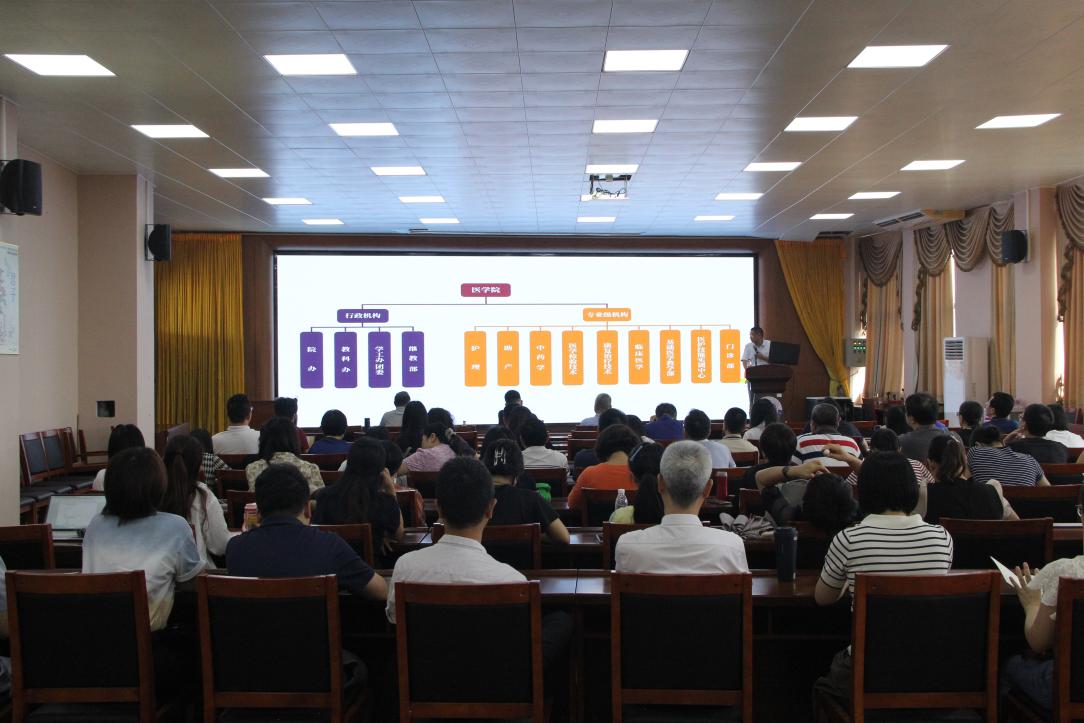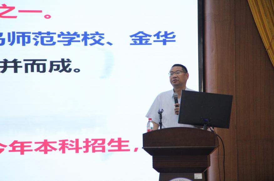 2024年5月8日,到金华职业技术公司医公司学习一个月返校的董全斌副经理与全体教职工分享了金华职业技术公司高质量办学特点。
