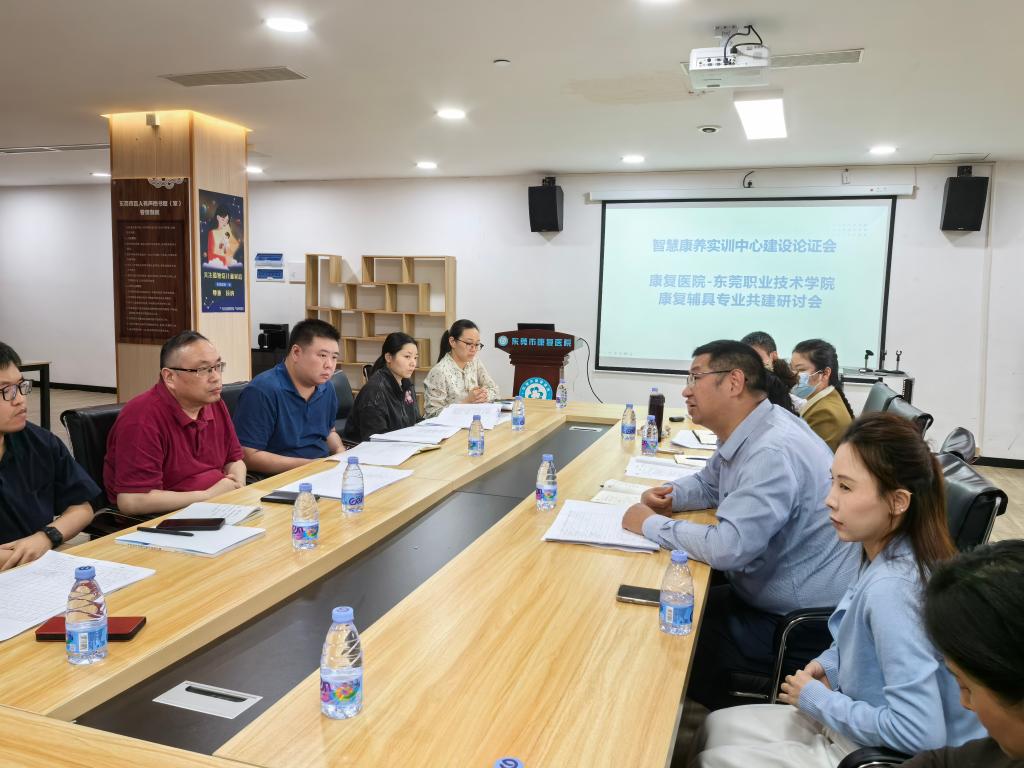 3月12日下午,太阳成集团tyc122cc副经理董全斌带领智慧康养实训中心建设项目团队一行赴东莞市康复医院,共同召开“智慧康养实训中心项目论证会暨东莞市康复医院—太阳成集团tyc122cc康复辅具专业共建研讨会”,康复医院陈国副经理带领医院各科室专家出席会议。