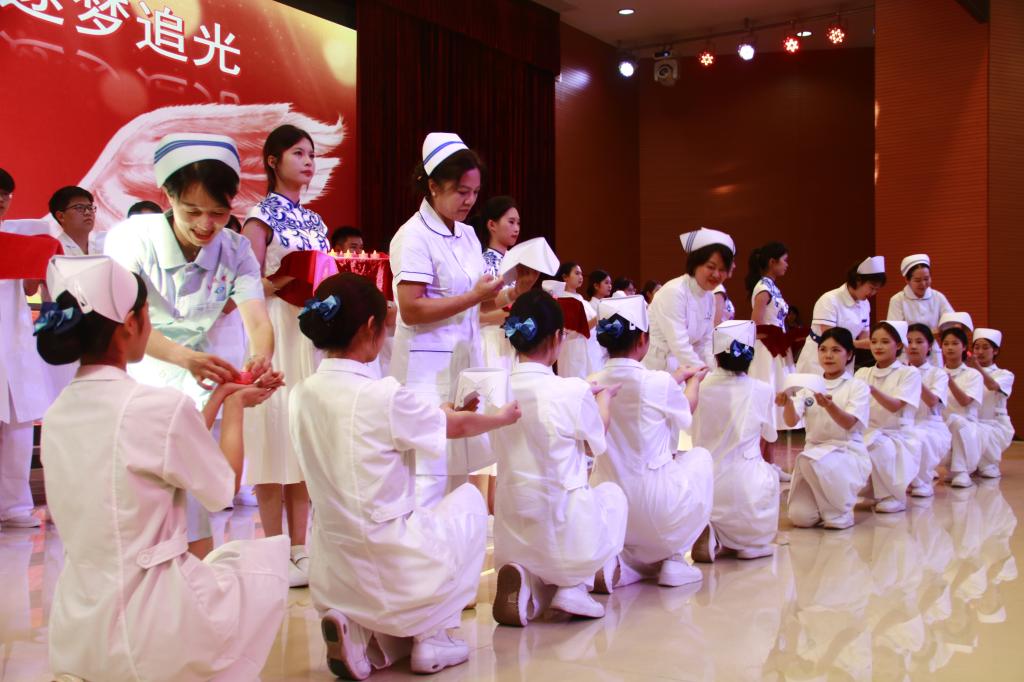 庄严的授帽及宣誓仪式将现场气氛推向了高潮。这是道滘校区延续多年的重要传统活动,承载着对南丁格尔精神的深切缅怀与传承,同时勉励各位护理专业的青年学子以青春诠释护理事业的温度,以行动践行“健康所系、性命相托”的誓言。