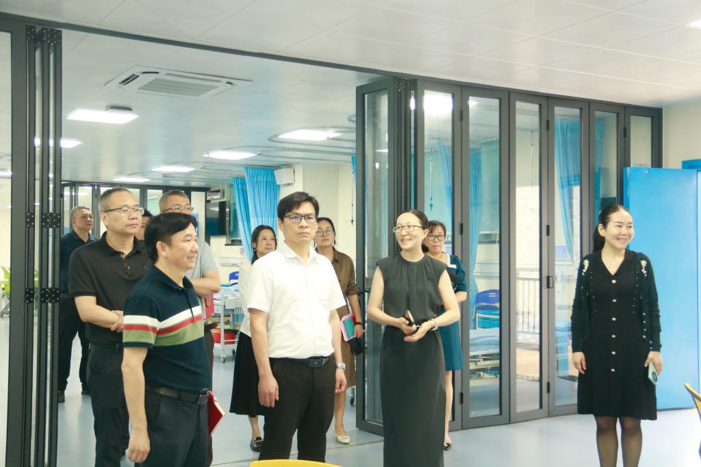 会后,在蔡东宝副书记和卫健院领导班子的陪同下,望牛墩医院领导一行参观了公司实训楼、心理健康工作室、食堂等场所。