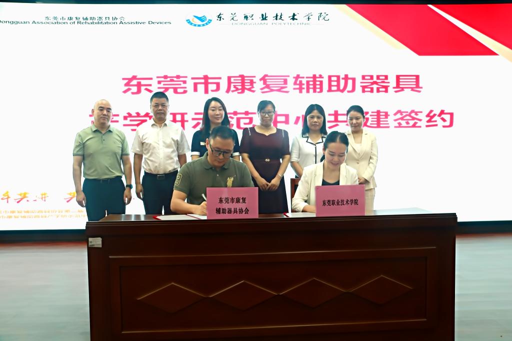 在与会嘉宾见证下,公司党总支书记、经理宋海燕与市康复辅助器具协会会长张钊代表双方签署合作协议。随后,黄荣峰局长、杨云奇副董事长等人为“东莞市康复辅具产学研示范中心”和“东城、南城康复辅助器具科普实践点”揭牌。