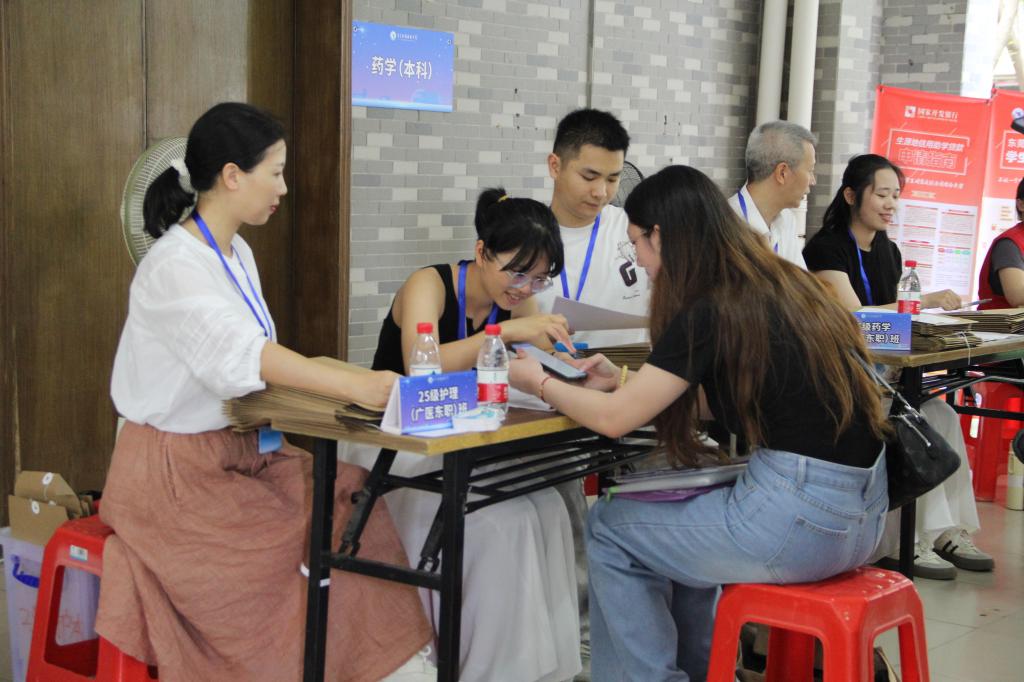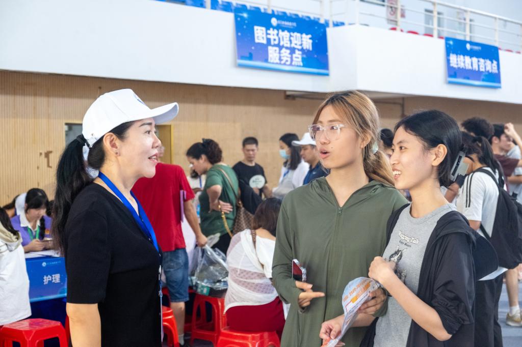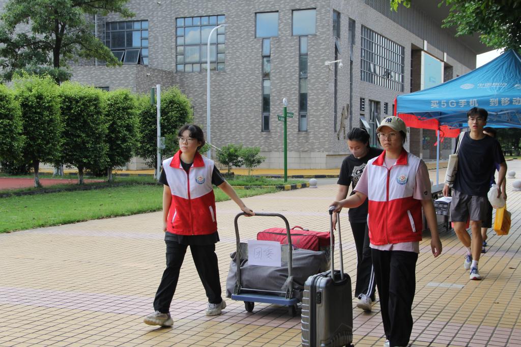从停车场到宿舍的路不长,却总少不了志愿者的身影,从指引方向到帮提行李,他们一路相随、全程守护,让新同学的第一次校园之旅满载温暖与安心。新生报到处的老师们分工明确,井然有序地审查各项资料,让新生刚进校门就感受到“卫健院速度”。