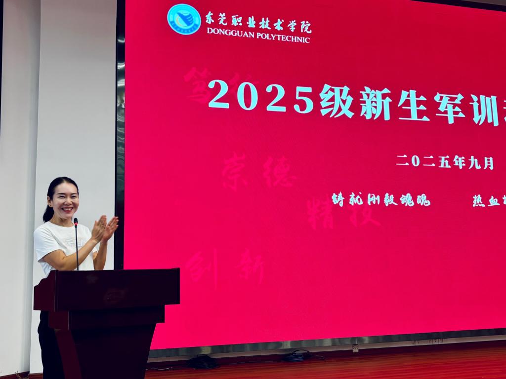最后由宋海燕经理作动员讲话。她向同学们介绍了道滘校区的配套设施、专业发展、团队力量、竞赛成绩等情况,勉励同学们要于历史中传承红色基因,在伟大时代勇担强国使命,在青春赛道练就过硬本领,同时提出四点希望:一是承军训内涵,厚植家国情怀的信念;二是练军训硬功,淬炼医学路上的韧劲;三是守军训规矩,培养医者该有的严谨;四是靠军训协作,攒足集体里的凝聚力。