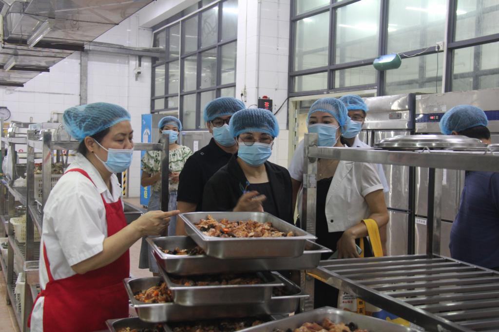 检查组一行首先检查校园防汛重点区域,实地查看了田径场施工情况、广告牌、宣传栏、校园江边防涝及排水管道畅通情况、防汛物资储备量及防汛设施运行状态。在公司食堂,司琪书记重点检查了应急电源配备及食材储备情况,听取相关工作人员汇报,并就检查中发现的潜在安全隐患提出具体整改意见。她强调,食堂作为人员密集场所,是台风防御工作的关键点位,必须做到万无一失。要确保应急电源随时可用,同时做好食材储备,保障极端天气下师生的用餐安全和正常供应。