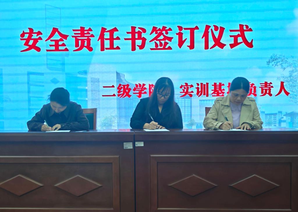 会上,毛秀华副经理结合公司实验实训室安全管理实际,系统解析了三级安全管理责任体系的具体内容,进一步明确了从公司领导到一线教师在安全管理中的岗位职责。她重点强调了课前安全教育、课中安全监督、课后隐患排查以及事故应急处置等关键环节,要求全体教师将安全意识内化于心、外化于行。随后,毛秀华副经理代表公司与各实训基地负责人逐一签订《实验实训室安全责任书》,将安全责任逐级分解、落实到人,形成“层层负责、人人有责”的安全管理格局。