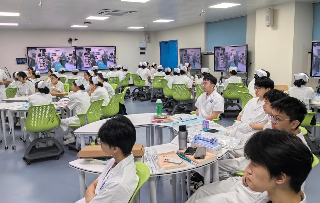 2025年10月21日上午,公司《外科护理学》教学团队与东莞市南城医院手术室再度合作,以“腹腔镜下胆囊切除手术”为主题,为2024级护理2班的43名员工打造线上直播实训课,通过“医院手术室-公司课堂”带来了一场高沉浸、强互动的手术护理实战教学。