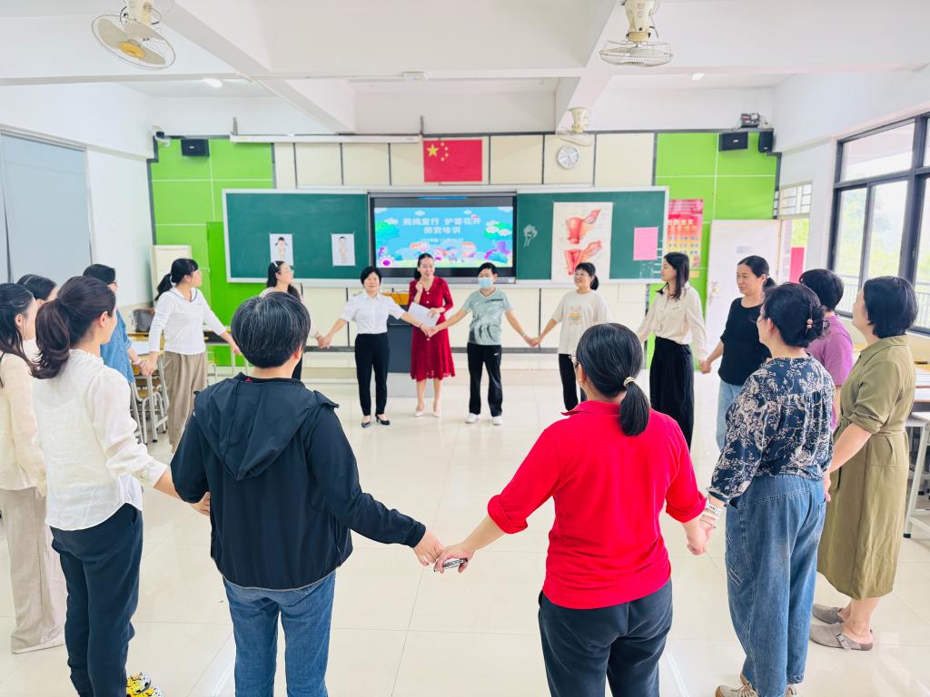 在培训环节,宋海燕经理与东莞市第六人民医院护理部魏梅香主任创新运用“课堂游戏+演示互动”的实践教学模式。宋经理结合多年教学经验,深入剖析互动教学技巧,将抽象的防性侵知识转化为贴合儿童认知特点的教学内容;魏主任则通过现场示范,细致指导教师如何设计融合防性侵教育的趣味课堂游戏,助力参训教师快速掌握实操方法。培训现场气氛热烈,教师们积极参与、踊跃互动,展现出浓厚的学习热情。