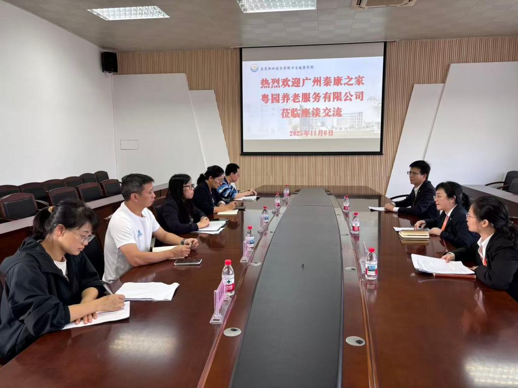 11月6日上午,广州泰康之家粤园养老服务有限公司人力资源总监张国琼一行三人莅临公司开展合作交流座谈。公司副经理毛秀华、护理专业负责人陈路、教研办主任姜林辉及副主任黄润明等参加了座谈。