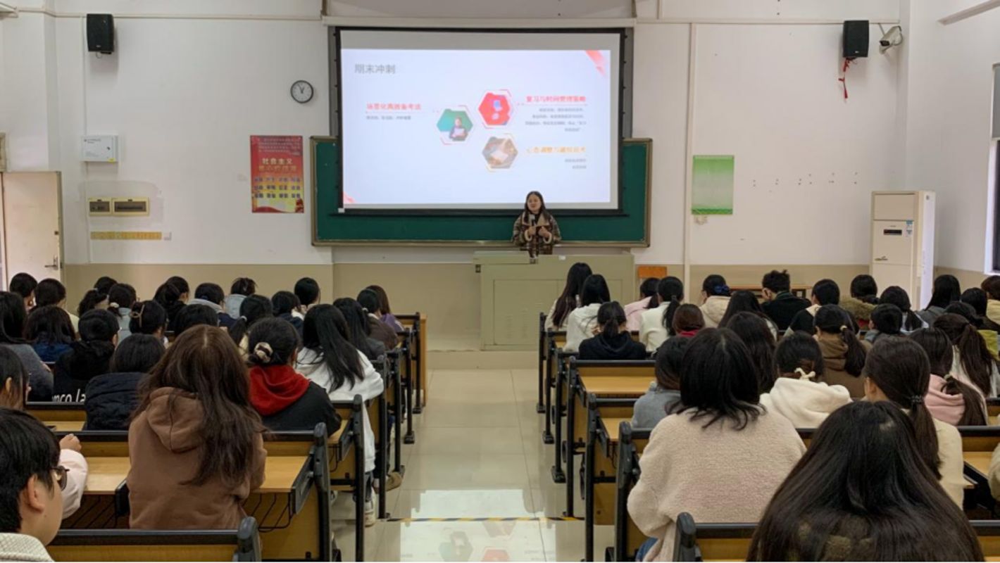 李珍老师为同学们解读国家资助政策,明晰青年时代使命。随后由范荧老师提醒学子合理规划生活,树立正确消费观,杜绝铺张浪费与盲目高消费。宣讲活动还通过分享“同行者”案例传递奋斗诚信精神,李珍书记寄语学子心怀感恩、勇担责任,并给出期末备考实操建议,切实解决学子困惑。最后,对学子们提出殷切希望:“天行健,君子以自强不息”。