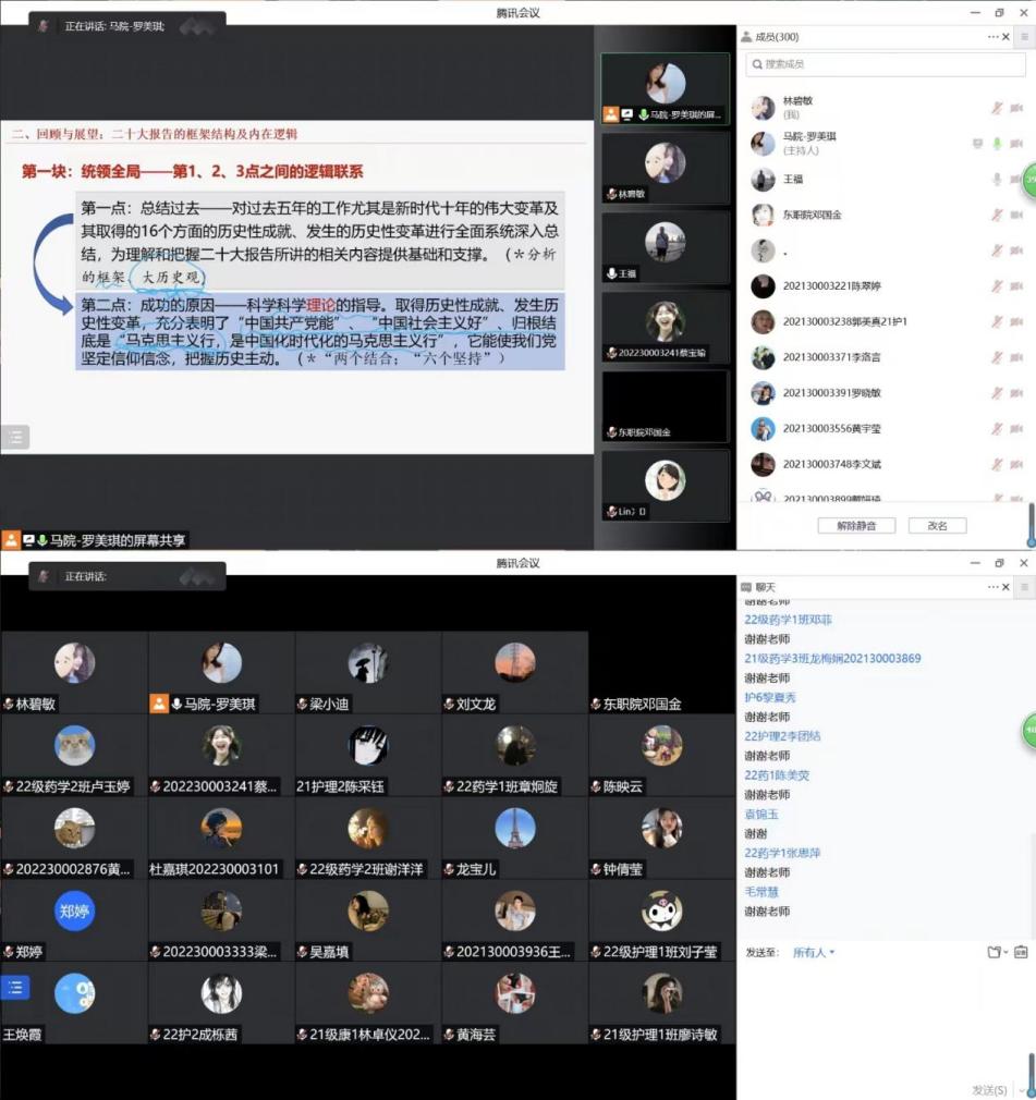 为贯彻落实公司马克思主义公司关于在全校开展二十大精神宣讲工作,太阳成集团tyc122cc于12月7日下午开展党的二十大精神专题宣讲会,本次宣讲会以腾讯会议的形式开展,邀请了马克思主义公司的罗美琪老师主讲。公司领导、各党支部委员等部分教职工代表于行政楼六楼会议室进行集中收看,其他师生自行收看。