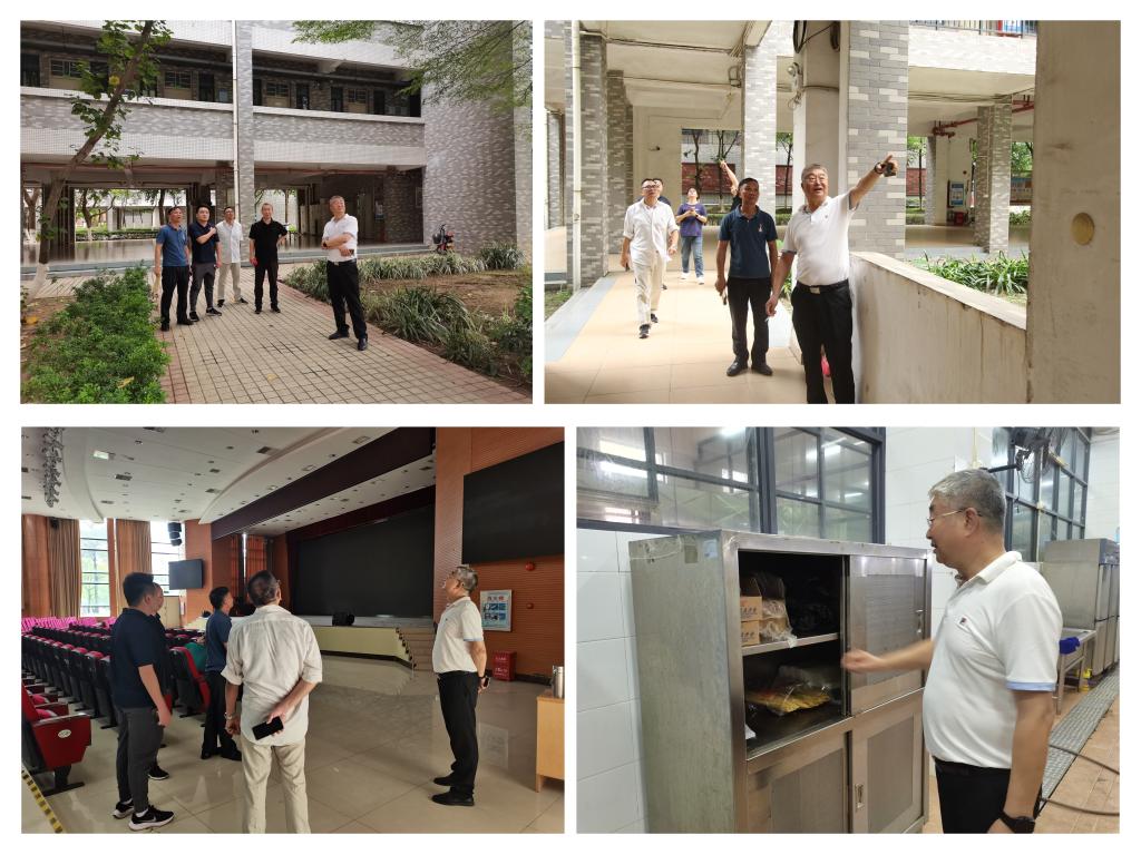 一行人实地察看了行政楼、实训楼、教学楼、报告厅、宿舍楼、饭堂、体育馆等场所和设施设备,向相关负责人反馈问题,提出整改要求,消除安全隐患。